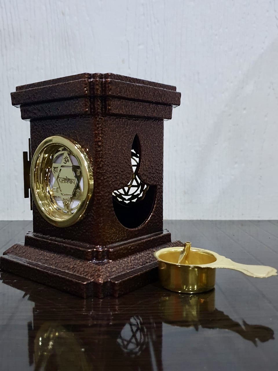 • Shadow of Sacred Geometry: When the included diya is lit, it casts intricate yantra shadows, enhancing spiritual vibrations and visual serenity.