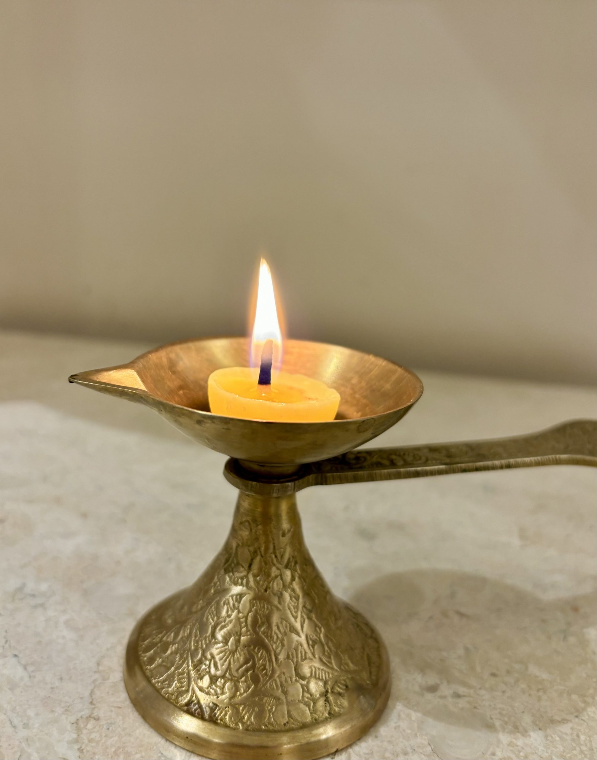 - Place the diya lamp holder on a stable, flat surface, such as an altar or clean area.